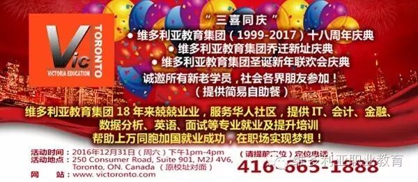 温馨提示:自2016年12月18日起,维多利亚培训中心地址已变更为 250 Consumers Road,Suite 901,Toronto, ON. M2J 4V6;电话仍为(416)665-1888。