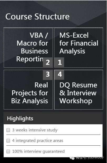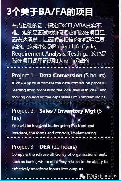 3. BA真实项目练习,在BA Real Project中运用Advanced Excel & Access Skills。不仅让学员会做,同时让学员们在面试时可以自信的讲述项目流程,从而增加录用可能。
