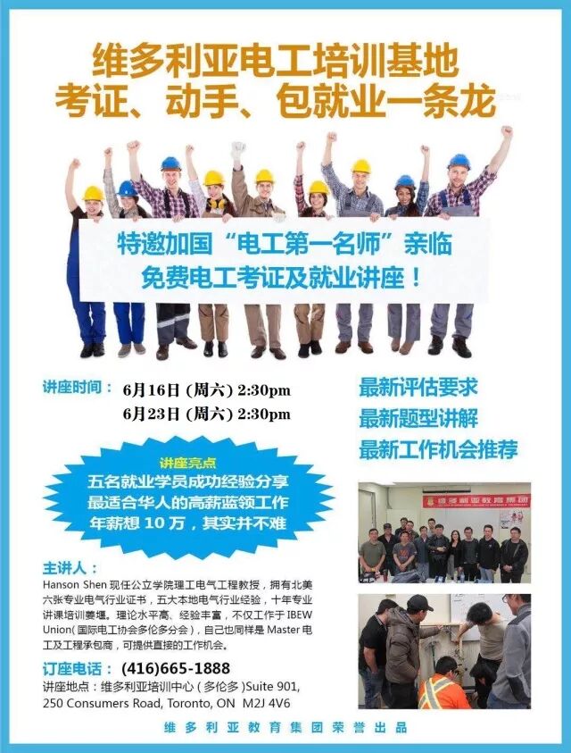 特邀维多利亚特邀加国“电工第一名师”亲临,带来电工考证就业讲座!