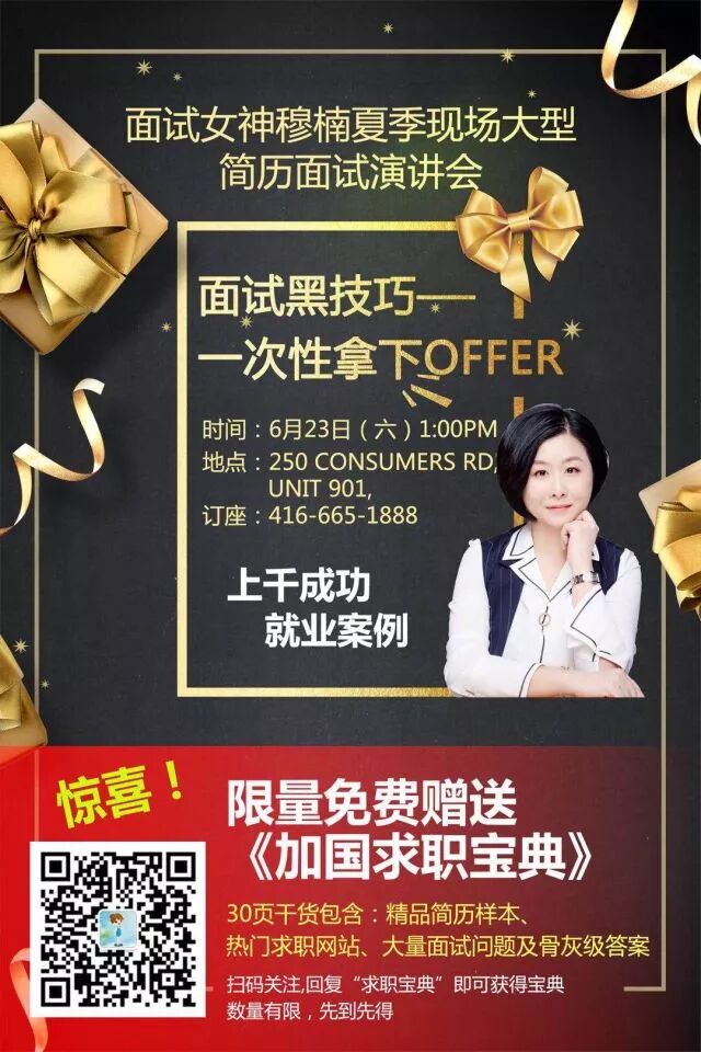 维多利亚特邀加国顶级猎头公司主管面试女神亲临,为广大多市华人带来大型简历面试讲座!