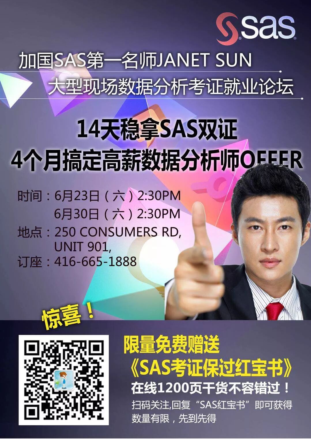 因为它就业前景灿烂,职位多,广泛应用于金融公司、医药研发机构、政府调查和监管部门。特别是在北美著名的金融和医药中心——多伦多,每年更是需要大量的SAS科技人员。