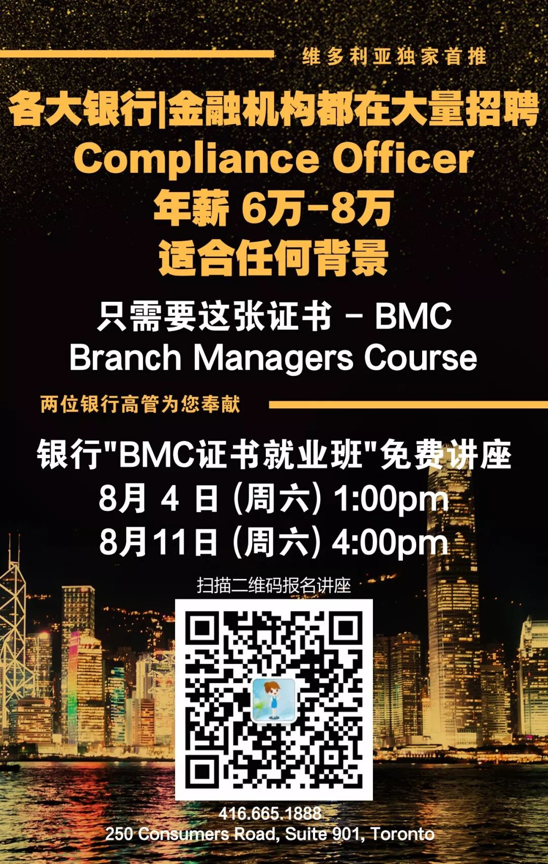 随着,这些年大量华人移民和留学生的涌入,加国五大银行对于国语雇员的需求量巨大!毫无疑问,Compliance Offer 是Retail Banking的高级职位,年薪6万起,当然也需要大量懂国语的的工作人员。