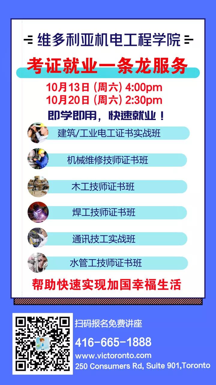 特邀维多利亚特邀加国“电工第一名师”亲临,带来电工考证就业讲座!