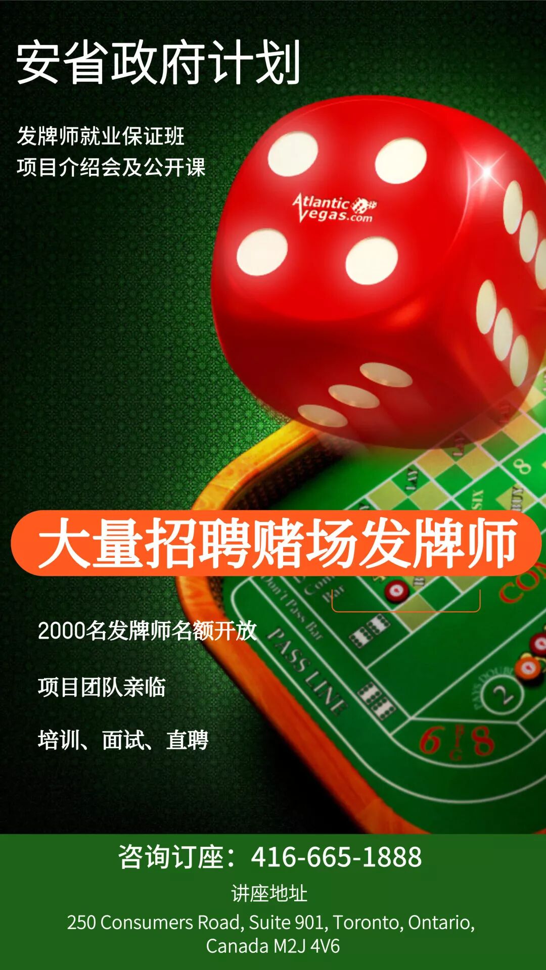 安省即将开放2000名荷官岗位,专业团队亲临培训、面试,就业保证!