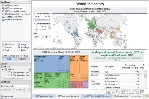 Tableau 是桌面系统中最简单的商业智能工具软件,Tableau 没有强迫用户编写自定义代码,新的控制台也可完全自定义配置。在控制台上,不仅能够监测信息,而且还提供完整的分析能力。Tableau控制台灵活,具有高度的动态性。
